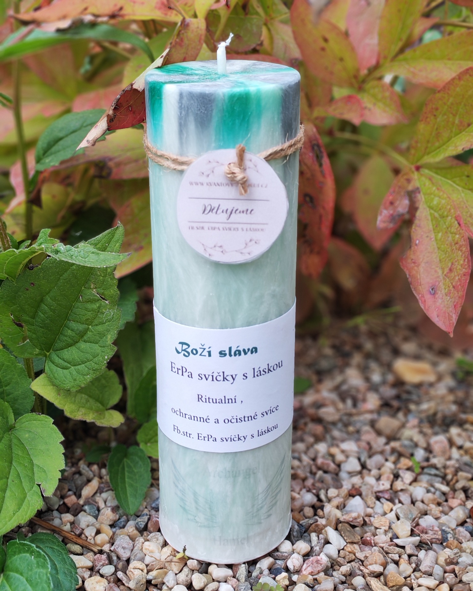 Zelená: působí v magii peněz, hojnosti, uzdravení, štěstí, blahobytu, dobrých obchodů, plodnosti přírody, pomáhá realizovat nápady a podporuje prosperitu...Modrá: souvisí s rituály zdraví, léčení, meditace,klidu vyjasnění situace, ochrany, léčí bolavou duši a pošramocené emoce...