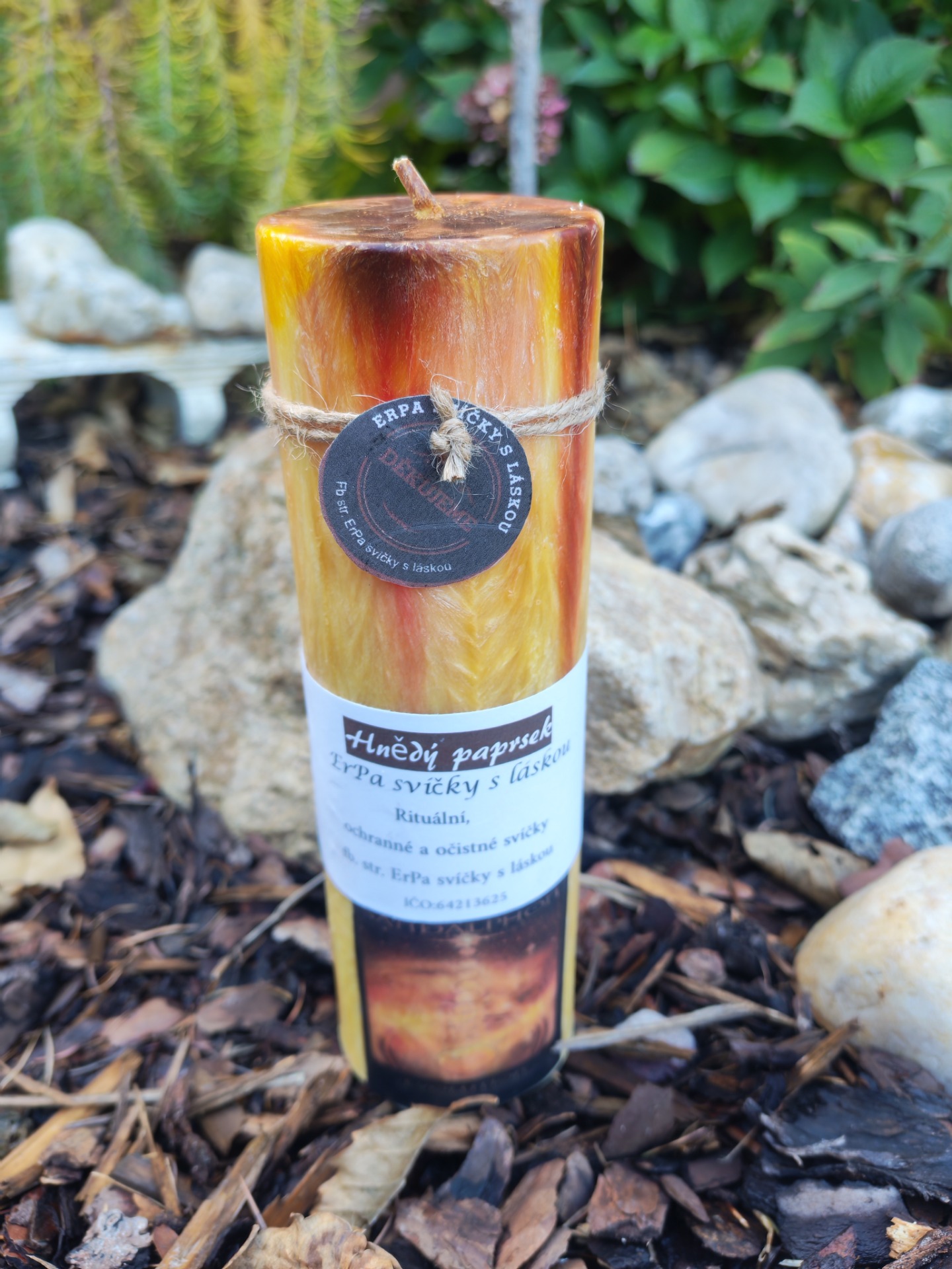 Hnědá: velmi univerzální, pomáhá se vším, co je potřeba – od zdraví, energie, majetku až po odvahu či vytrvalost. Magicky působí hnědá svíce nejlépe při uzemňování, budování pevných základů. Upevňování zálib, pro léčení zvířat. Odstraňuje nedostatek vůle, jistoty, obavy a strachy...