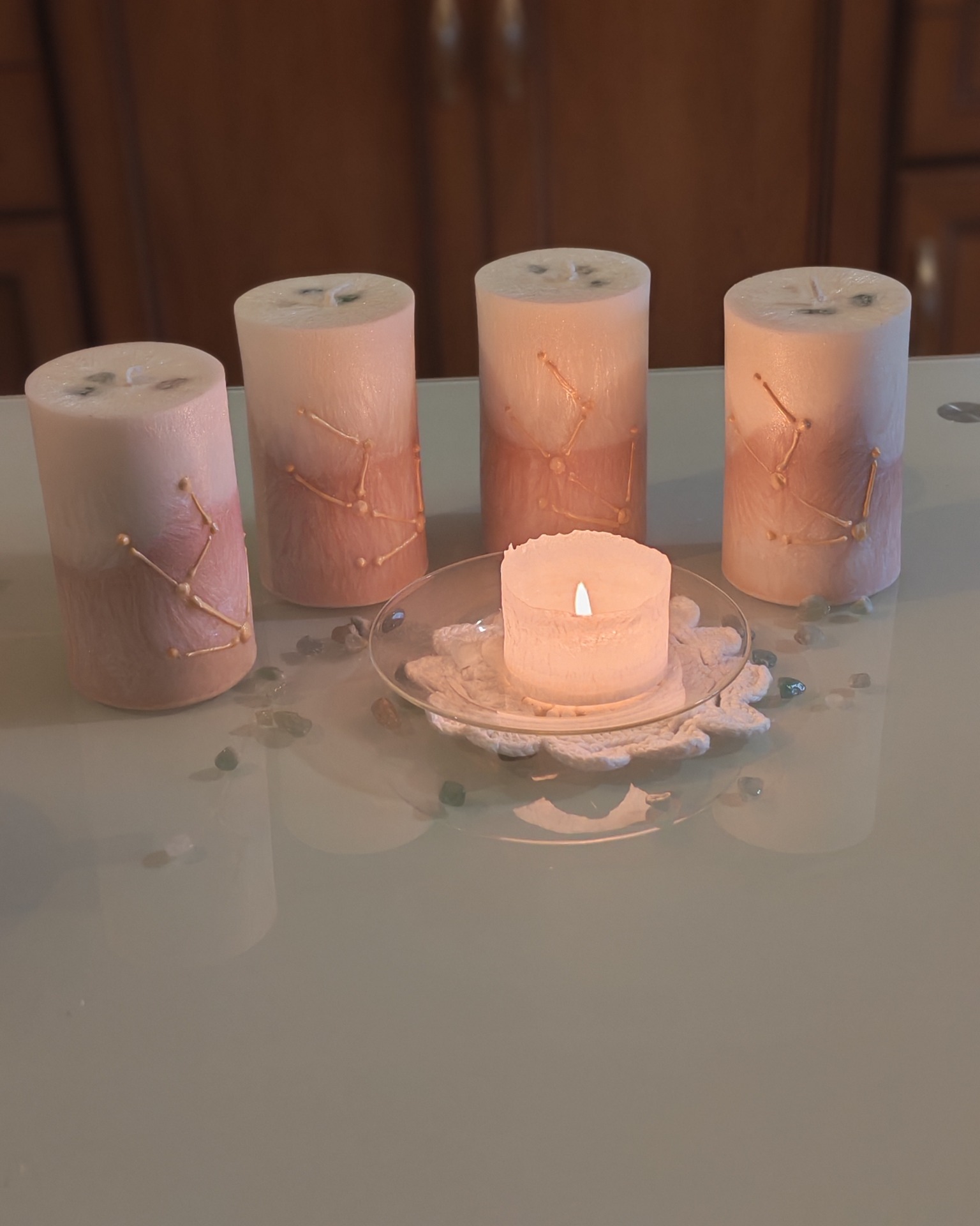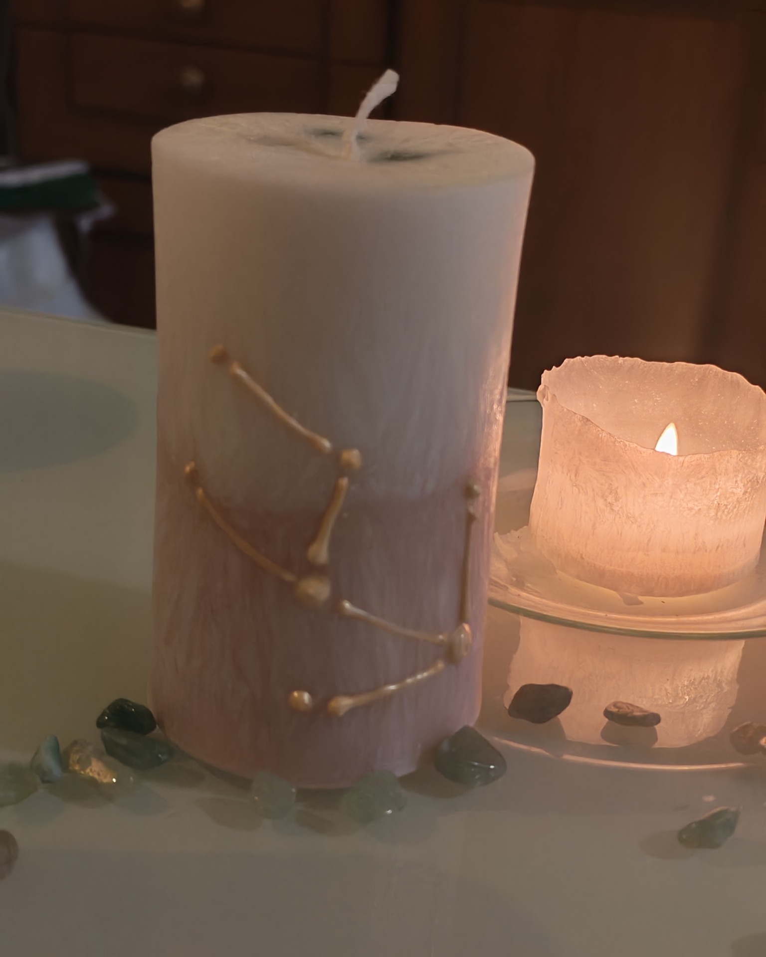 - Svíčka je vhodným doplňkem k meditaci nebo se může stát příjemným dárkem. Vše je ruční práce, včetně ručně malovaného souhvězdí "Býk".