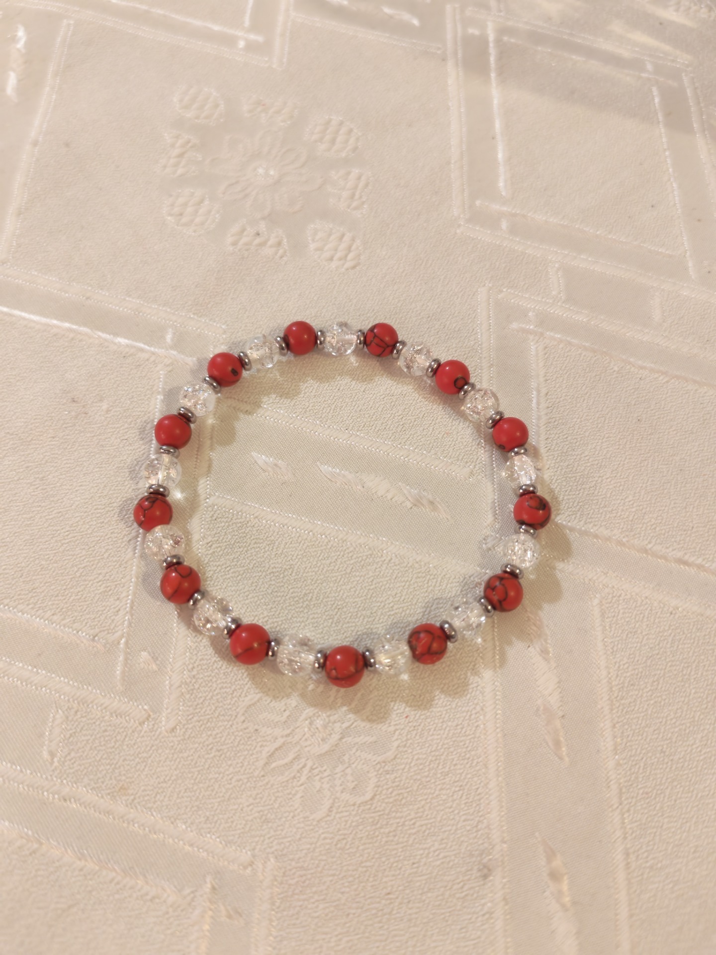 Červený tyrkys v kombinaci s křišťálem (pukaný) se stává velmi silným ochranným kamenem.