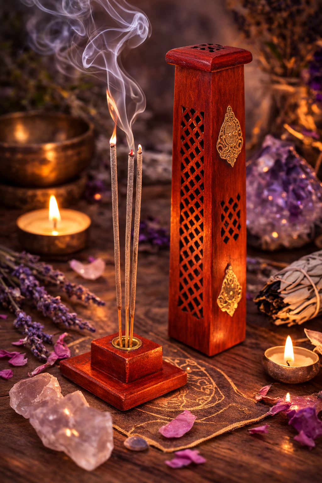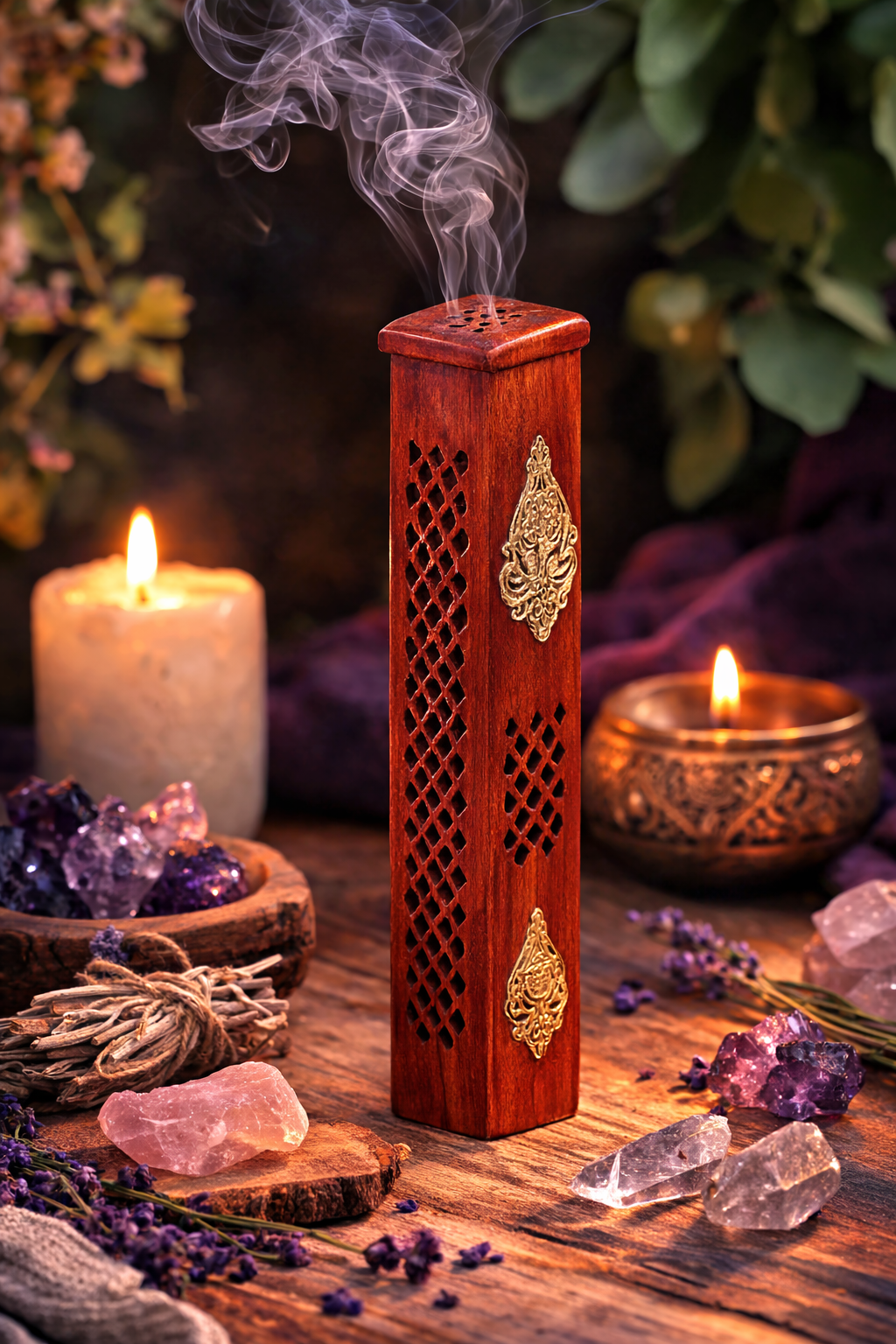 Díky svému věžovému provedení umožňuje bezpečné pálení tyčinek i kuželů uvnitř stojánku, přičemž popel zůstává zachycený uvnitř. Pomáhá tak udržovat prostor čistý a vytváří příjemnou atmosféru pro meditaci, relaxaci nebo duchovní rituály.