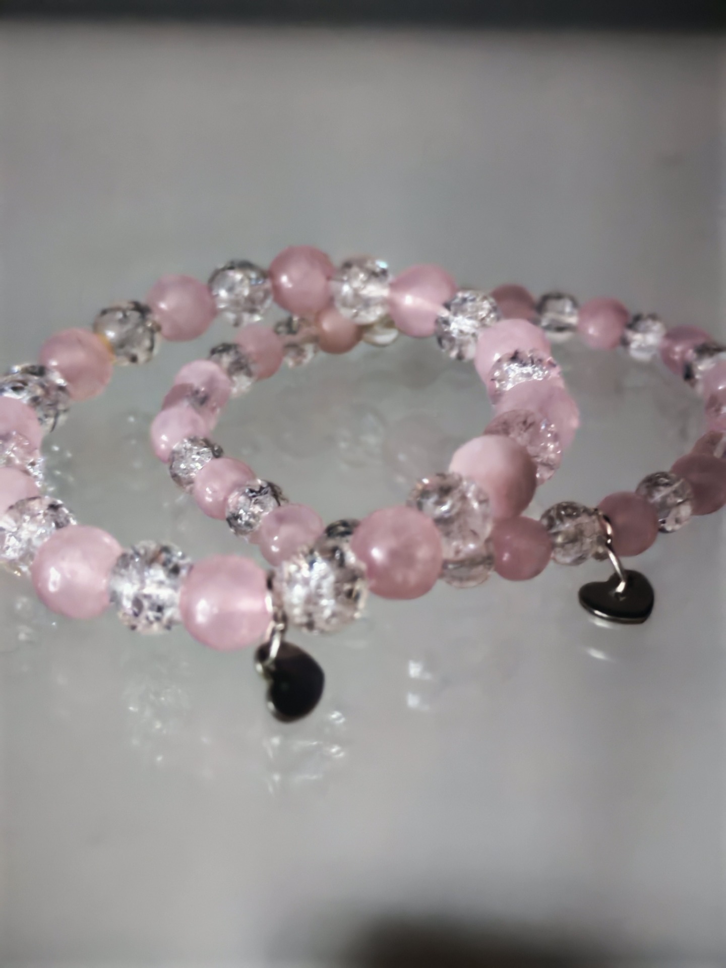 Minerální náramek z růženínu a křišťálu