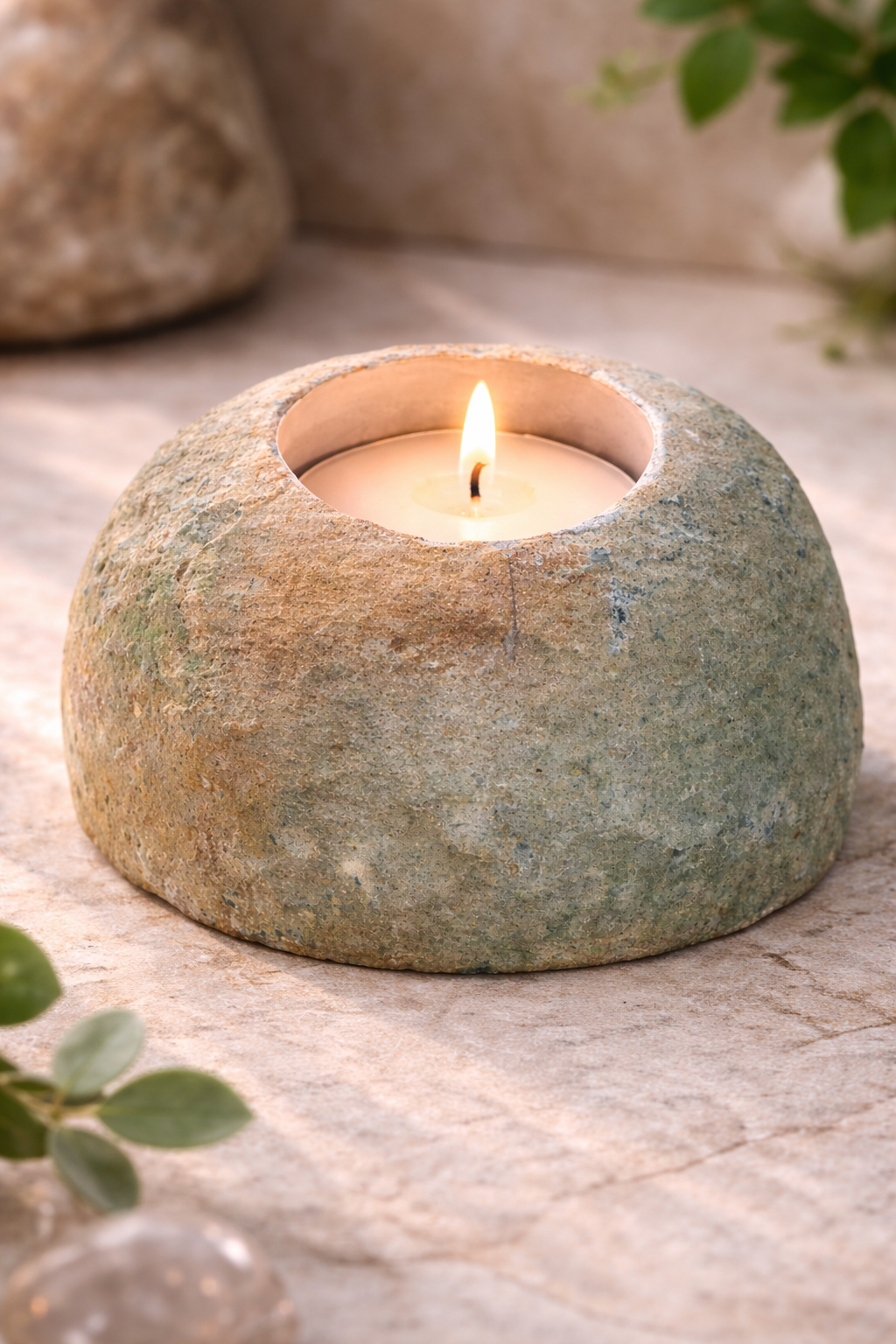 Přírodní svícen z pravého achátu. Každý kus je originál s jedinečnou kresbou kamene. Elegantní dekorace i krásný dárek. Achát je od pradávna považován za ochranný kámen, který podporuje vnitřní klid, stabilitu a duševní rovnováhu. Při zapálení svíčky se světlo jemně rozlévá strukturou kamene a vytváří uklidňující atmosféru, ideální pro meditaci, relaxaci, jógu nebo večerní zklidnění mysli.