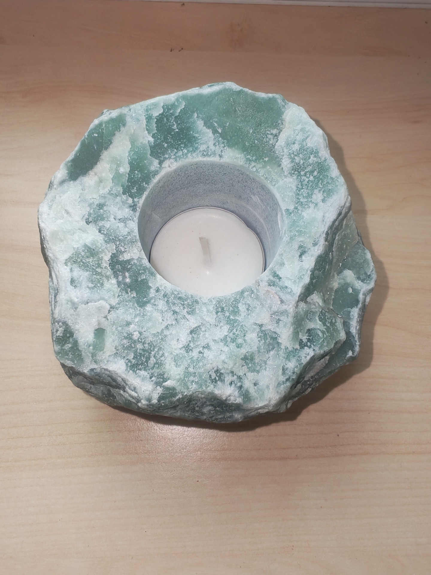 - Svícen ze surového avanturínu je přírodní dekorativní prvek, který přináší do prostoru harmonii a klidnou energii. Vyznačuje se svou přirozenou, neleštěnou strukturou a typickou zelenou barvou. Vzhled a vlastnosti: Svícen je vyroben z ručně opracovaného, surového kusu přírodního avanturínu, do kterého je pečlivě vyvrtán otvor pro umístění klasické čajové svíčky.