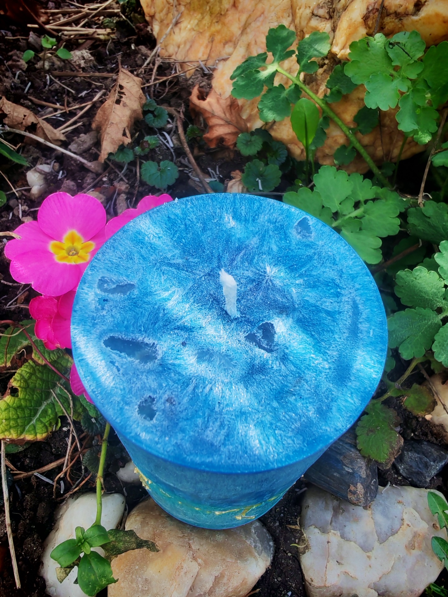 Každá svíčka je ručně vyráběný originál, proto se může mírně lišit barevné provedení i rozmístění minerálů.